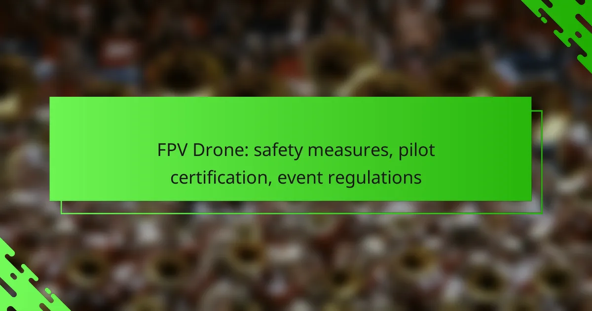 FPV drone operation requires adherence to essential safety measures, including pre-flight checks and regular equipment maintenance, to ensure compliance with regulations. Pilots must also obtain necessary certifications, such as the FAA Part 107 in the U.S., to operate legally and safely. Additionally, FPV drone events are regulated by the FAA and local authorities, encompassing permits, insurance, and local ordinance compliance.